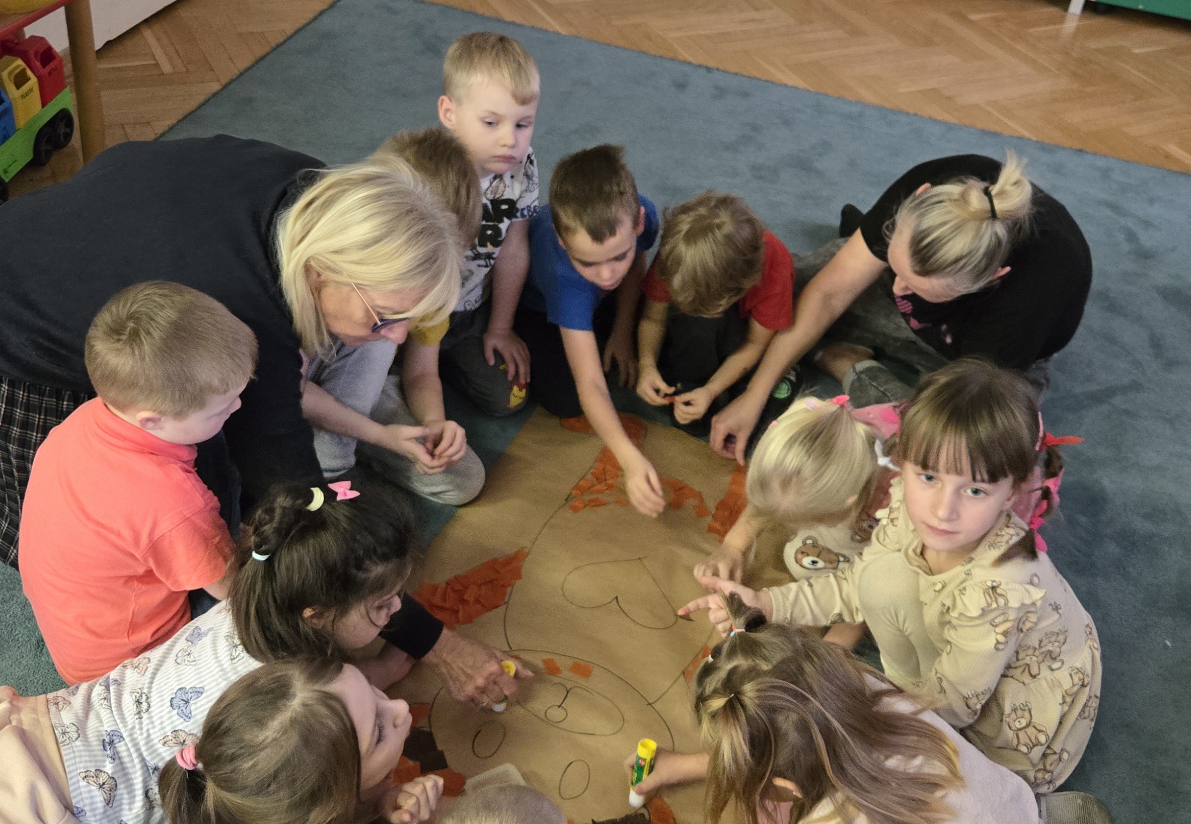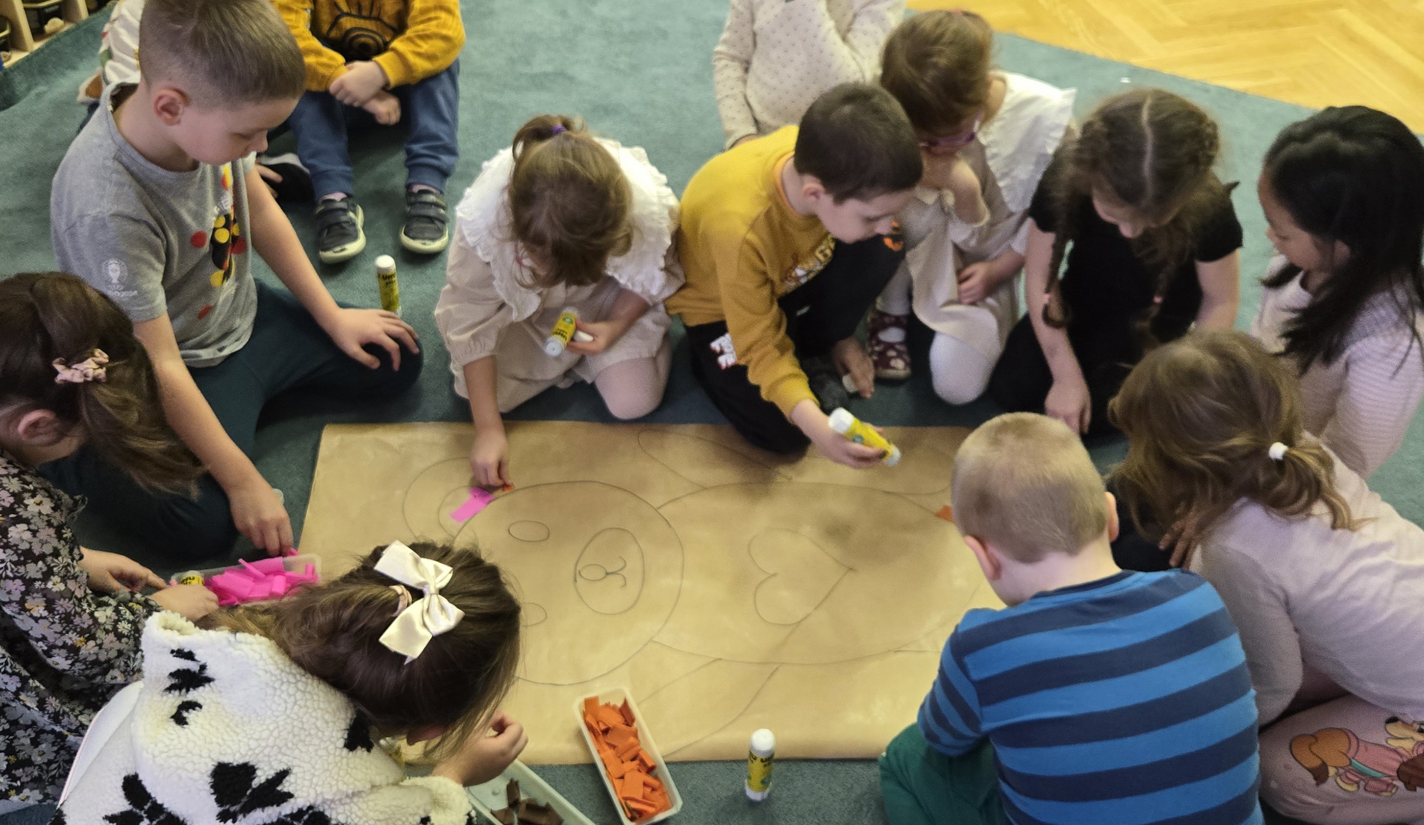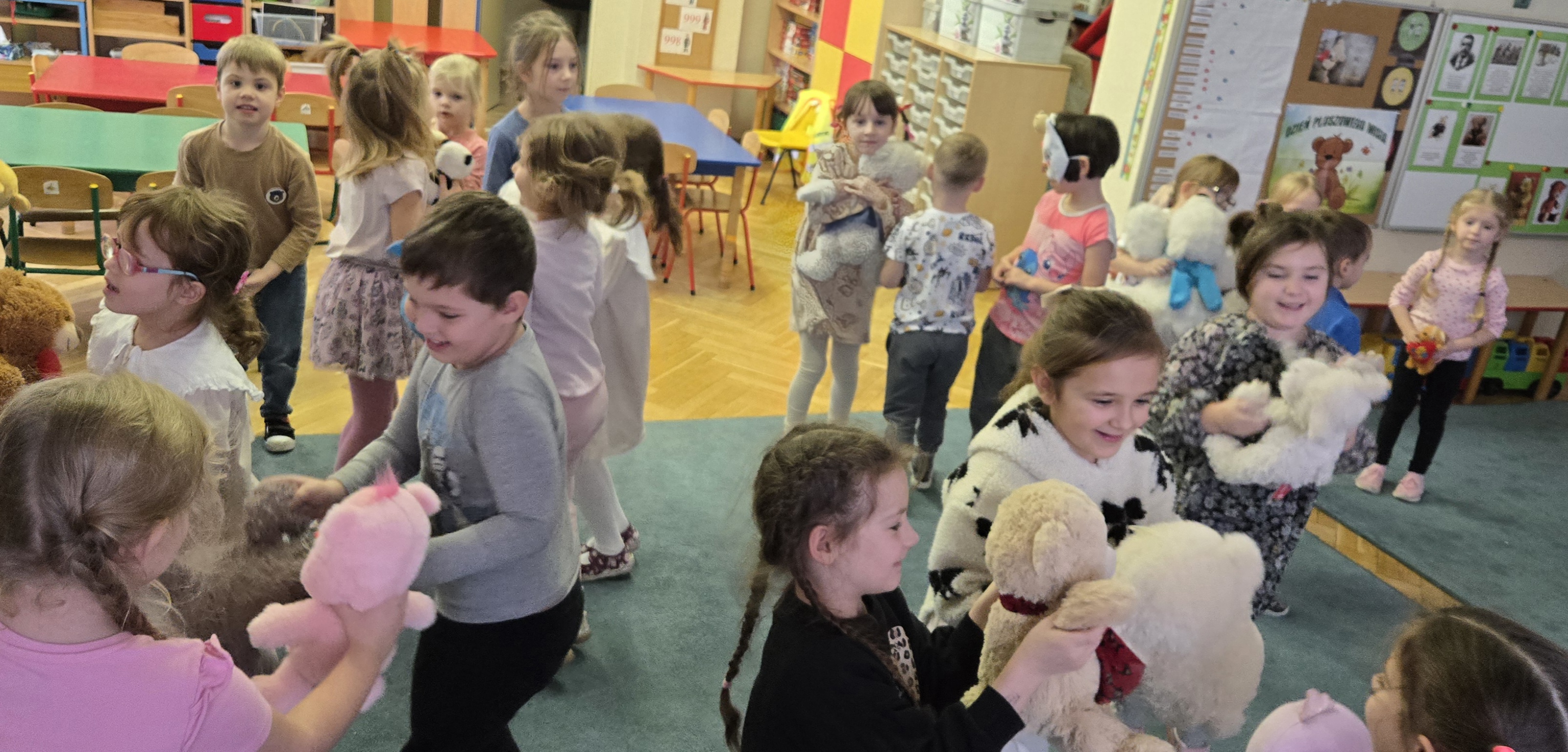 Z okazji Dnia Pluszowego Misia grupa III zaprosiła do siebie nasze 4 - 5 latki by wspólnie bawić sie z misiami. Były tańce, puzzle misiowi i praca plastyczna, którą można podziwiać w szatni.
