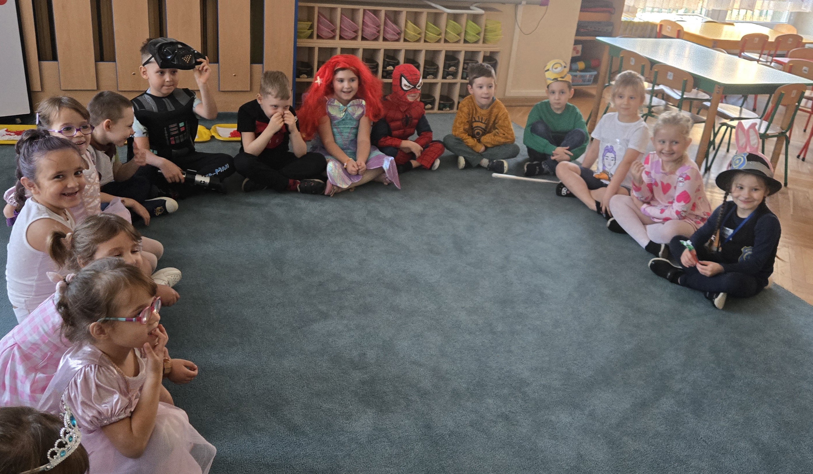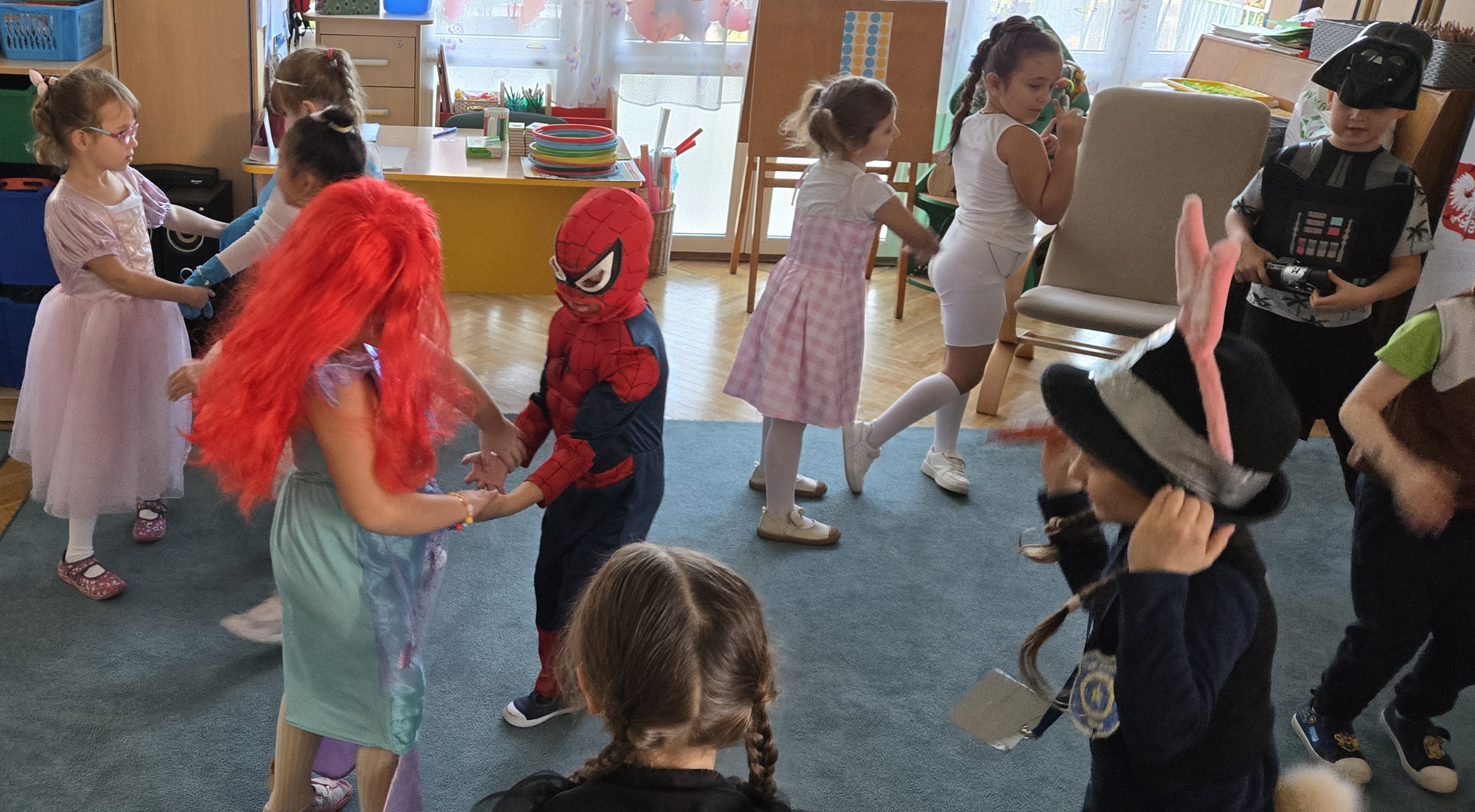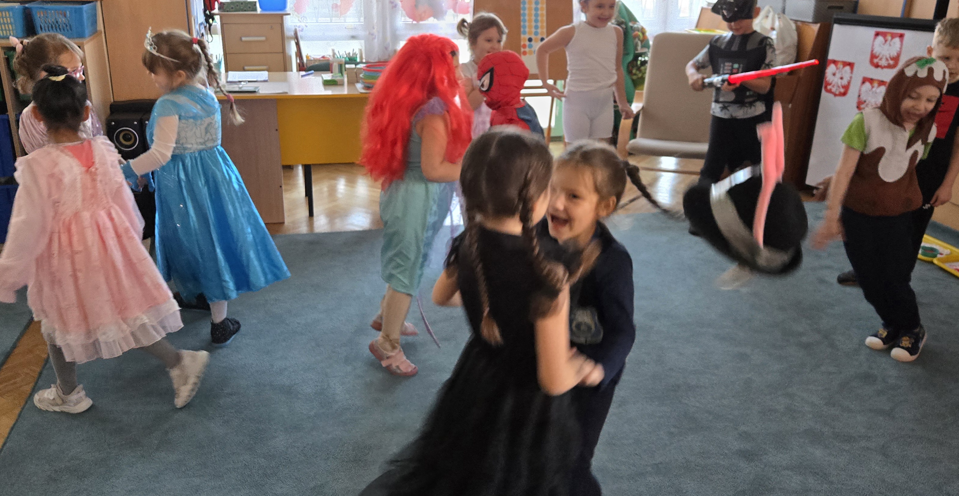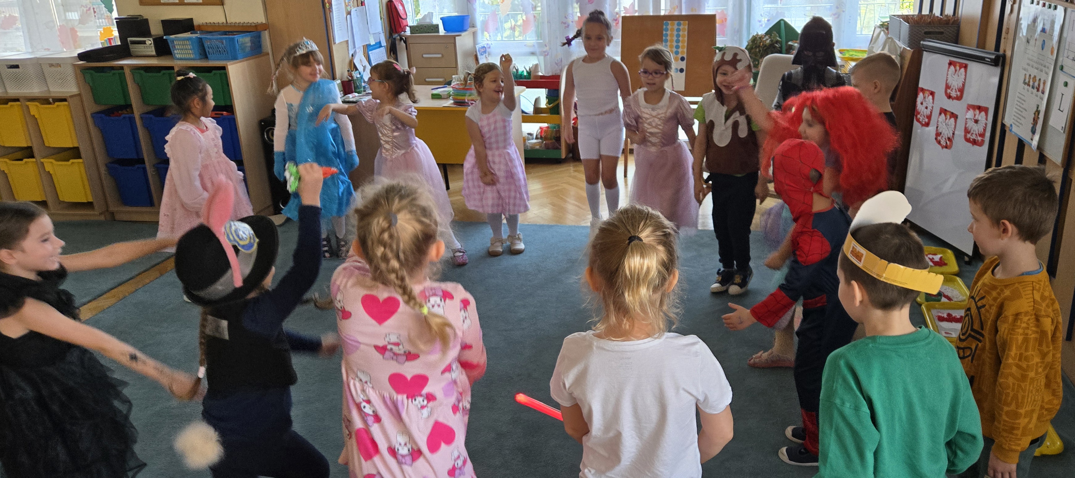 05. listopada. obchodzimy dzień postaci z bajki na część Walt'a Disney'a. Dlatego dzisiejszego dnia nasze starszaki poprzebierały się w swoje ulubione postaci z bajki. Byli superbohaterowie, księżniczki i zwierzęta. Na balu były tańce, konkursy i nagrody. Na koniec każdy przedszkolak został uhonorowany tytułem króla i królowej balu.