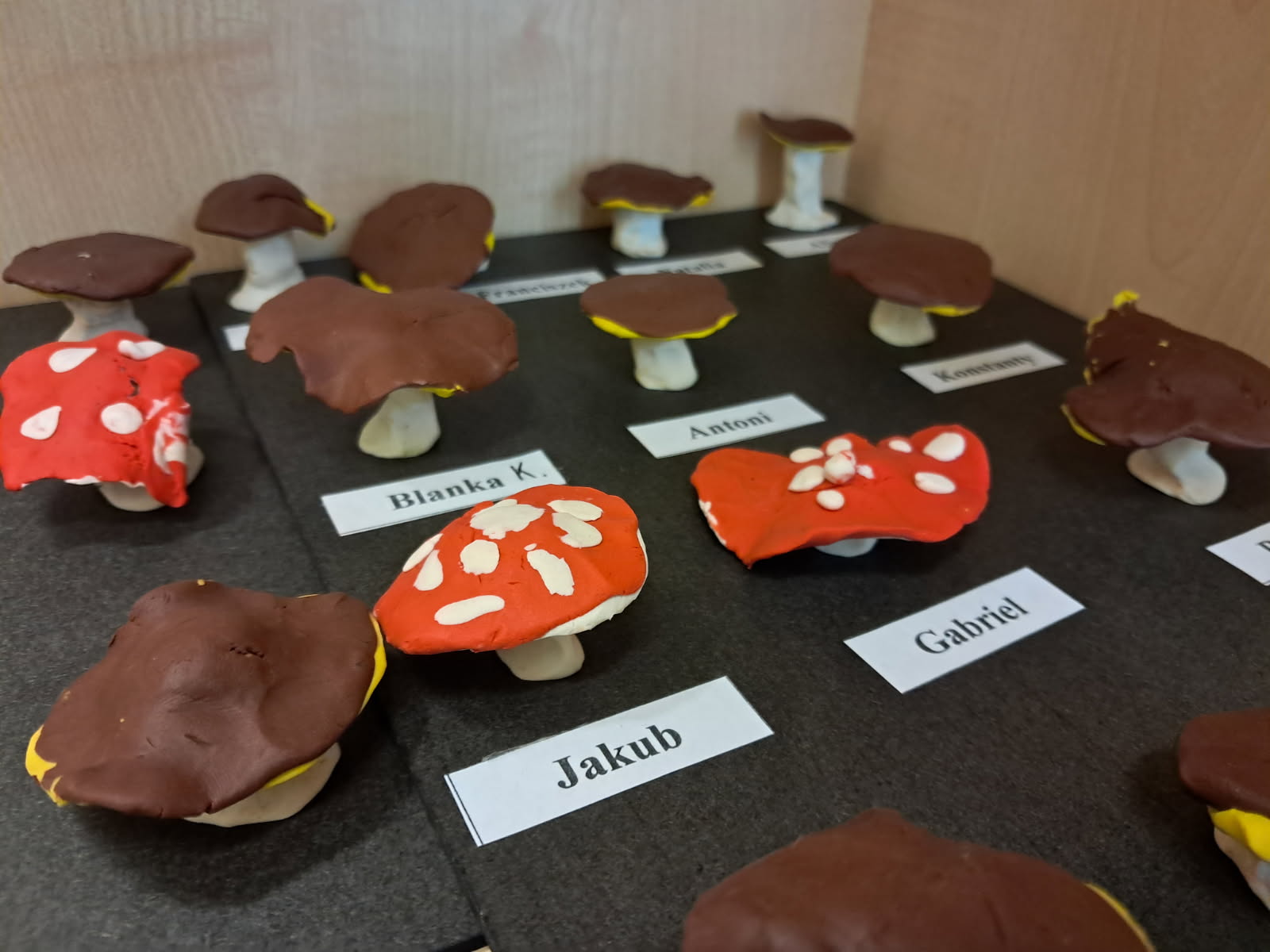 Dzieci z naszej grupy lepiły grzyby. Nasze prace można podziwiać na korytarzu.