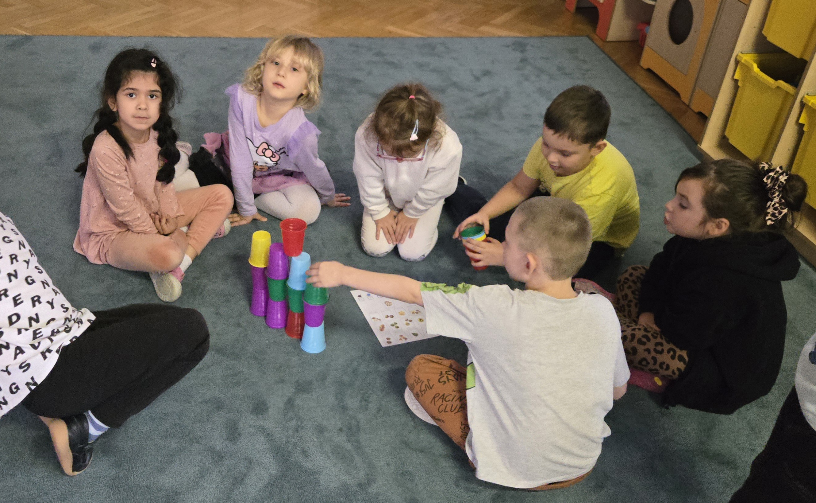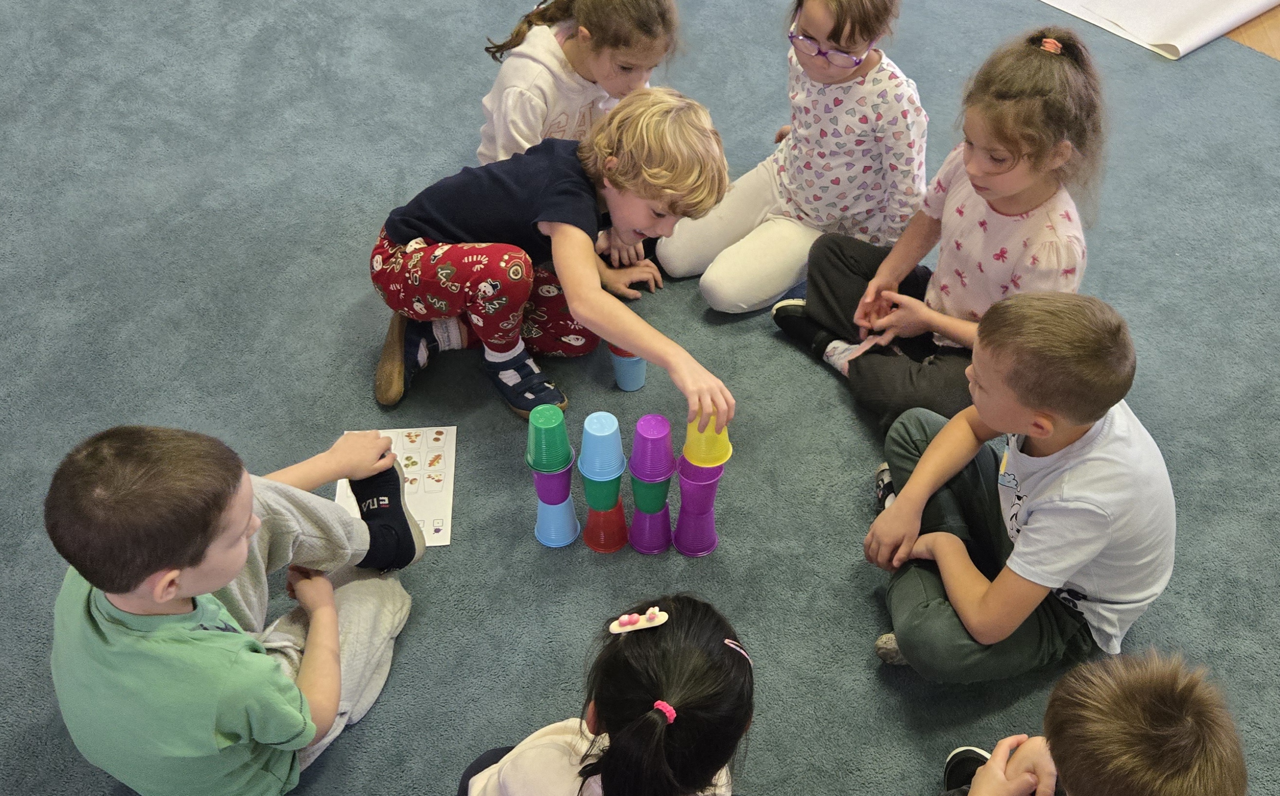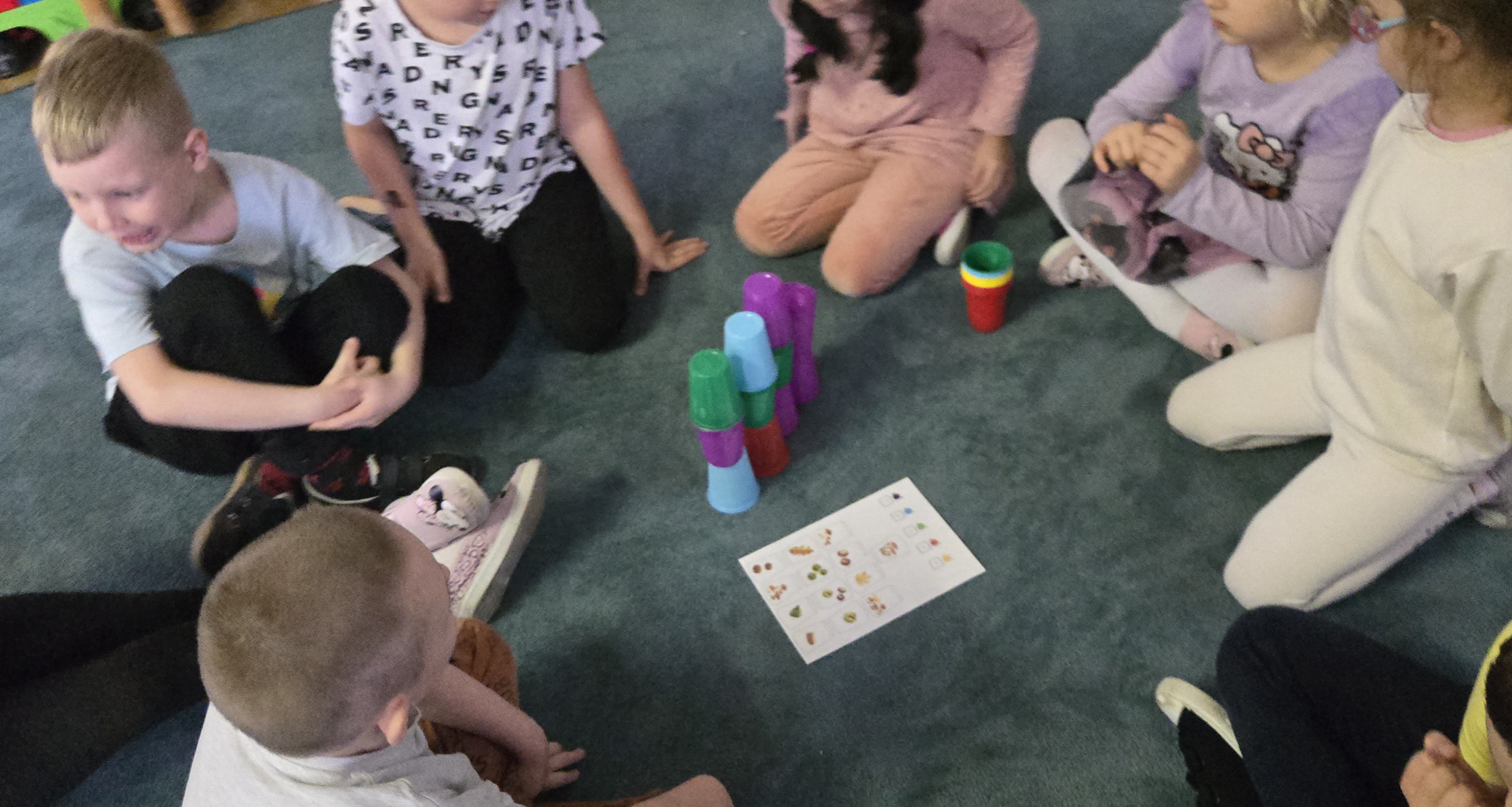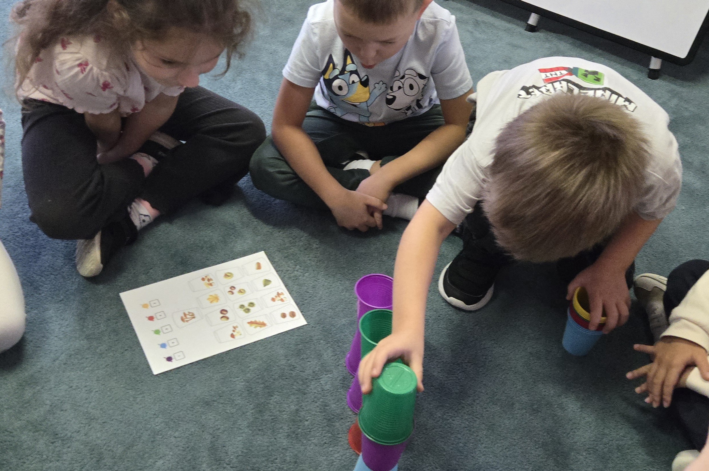 W grupie starszaków będziemy przez cały rok kodować. Wczorajszego dnia odbyło sie wprowadzenie i już dzieci bawiły sis na macie do kodowania układając jesienny obrazek według informacji (a1, 5g itp.). Oraz układały wieże z kolorowych kubków, przeliczając jesienne dary.