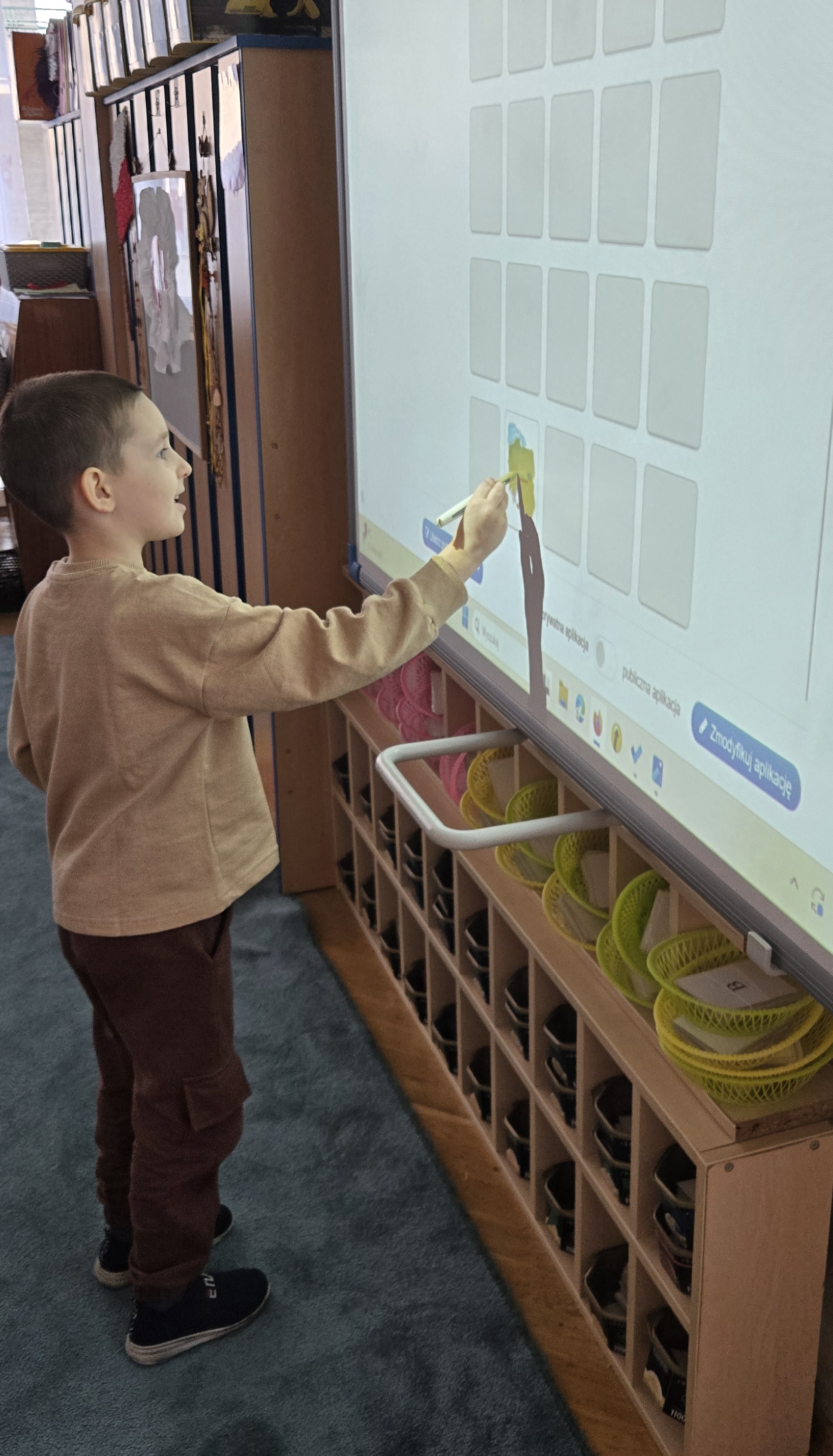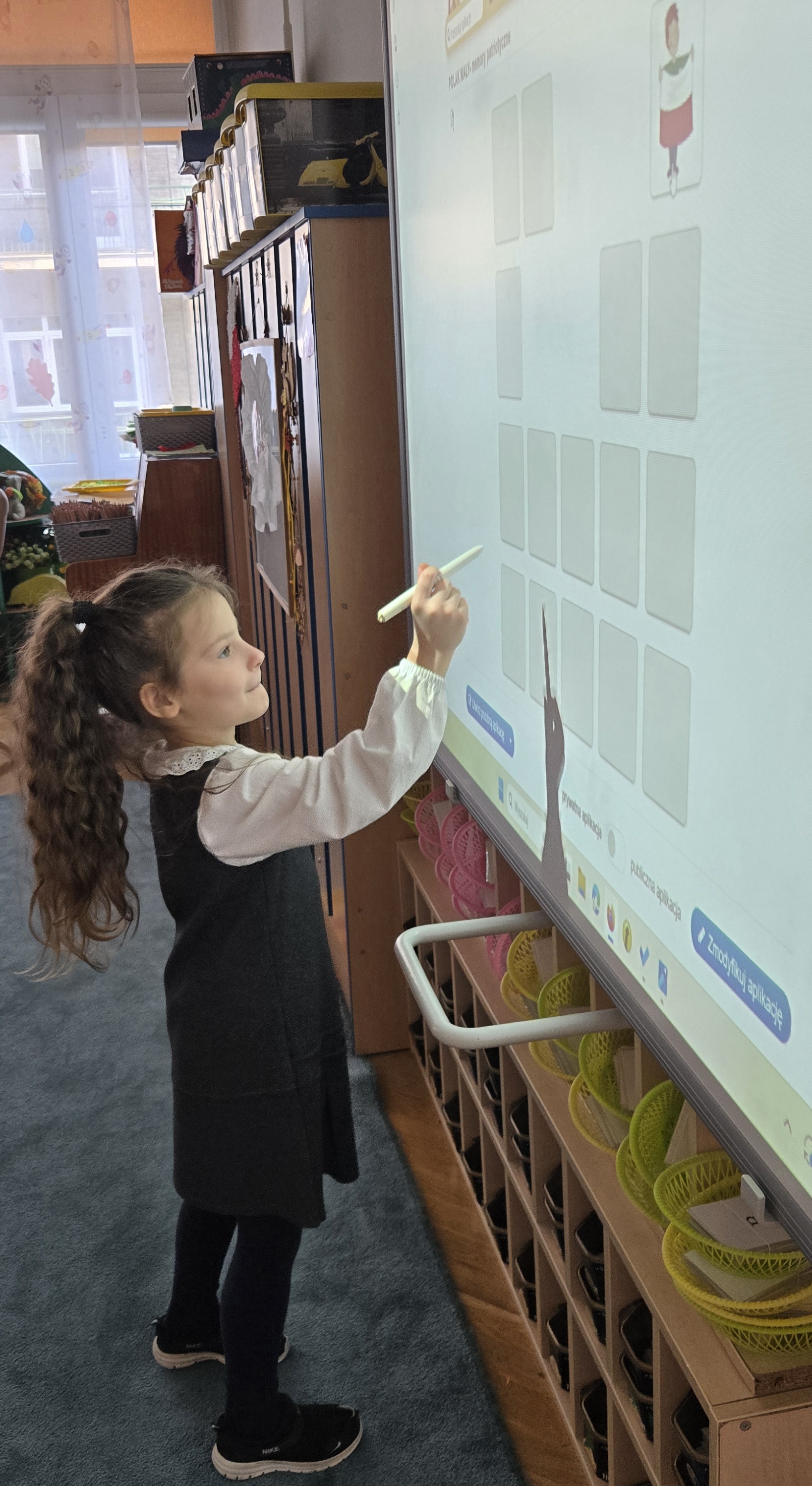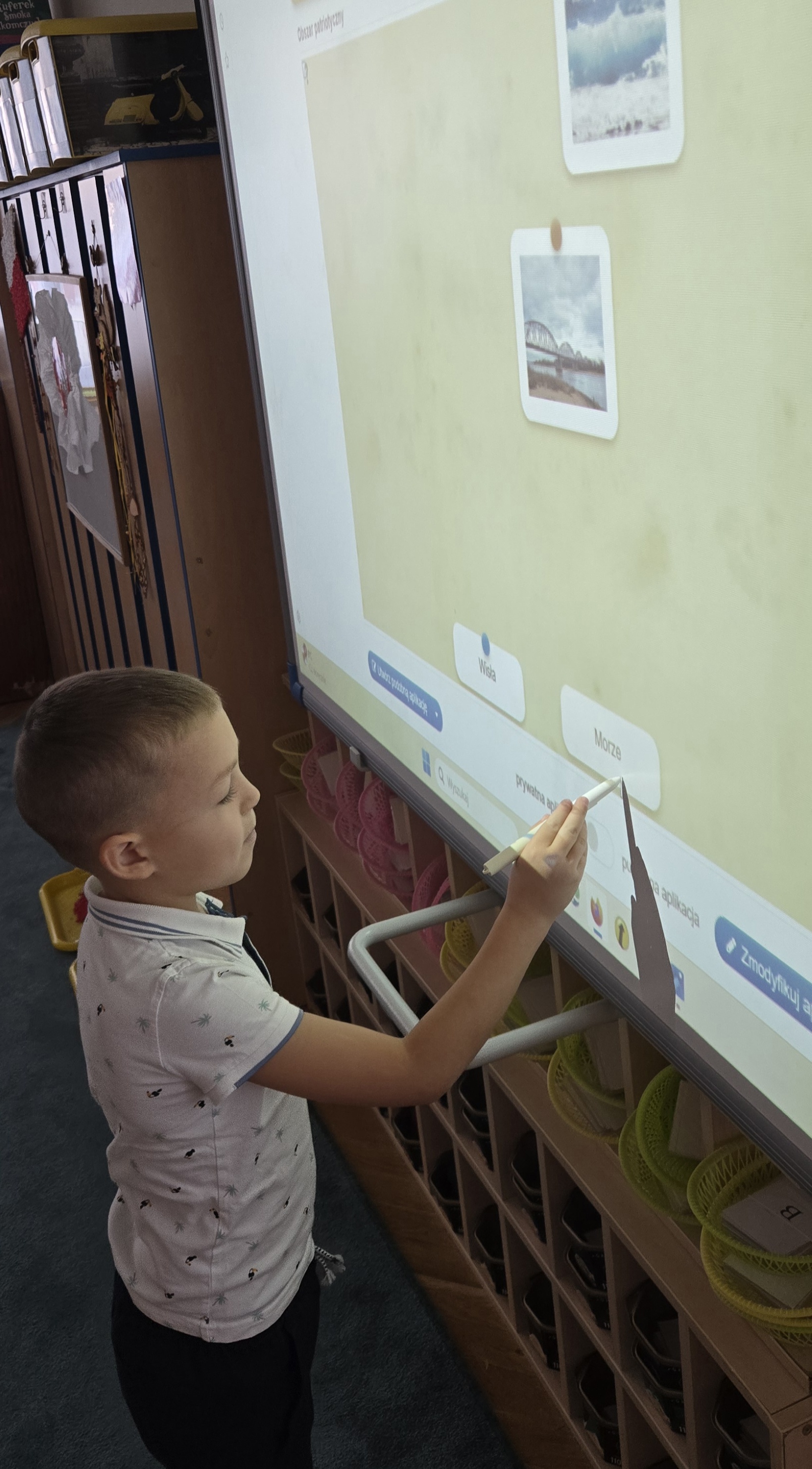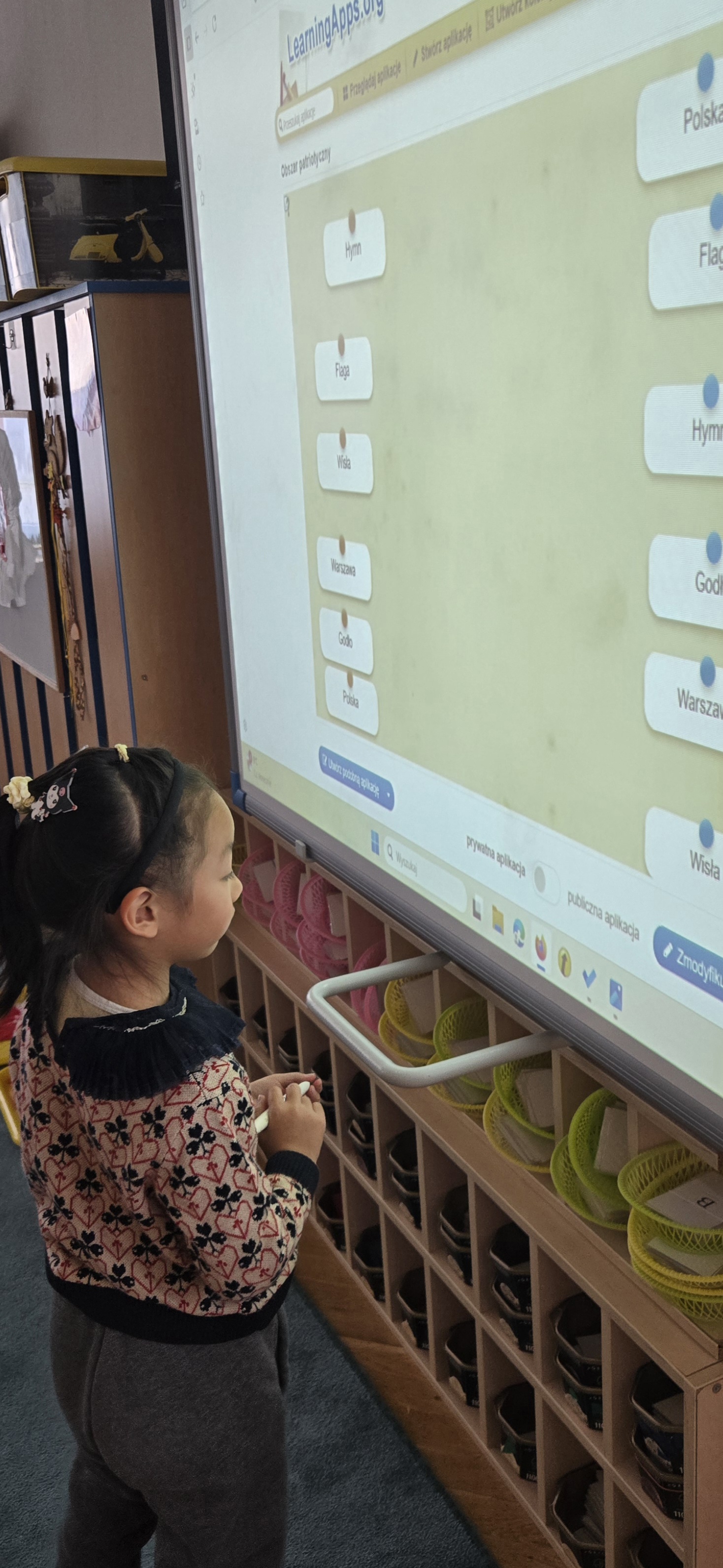 Dziś zakończyliśmy tydzień patriotyczny. Podsumowanie wiedzy zdobytej przez cały tydzień o pięknej Polsce odbyło się z użyciem tablicy multimedialnej i aplikacji LearningApps.