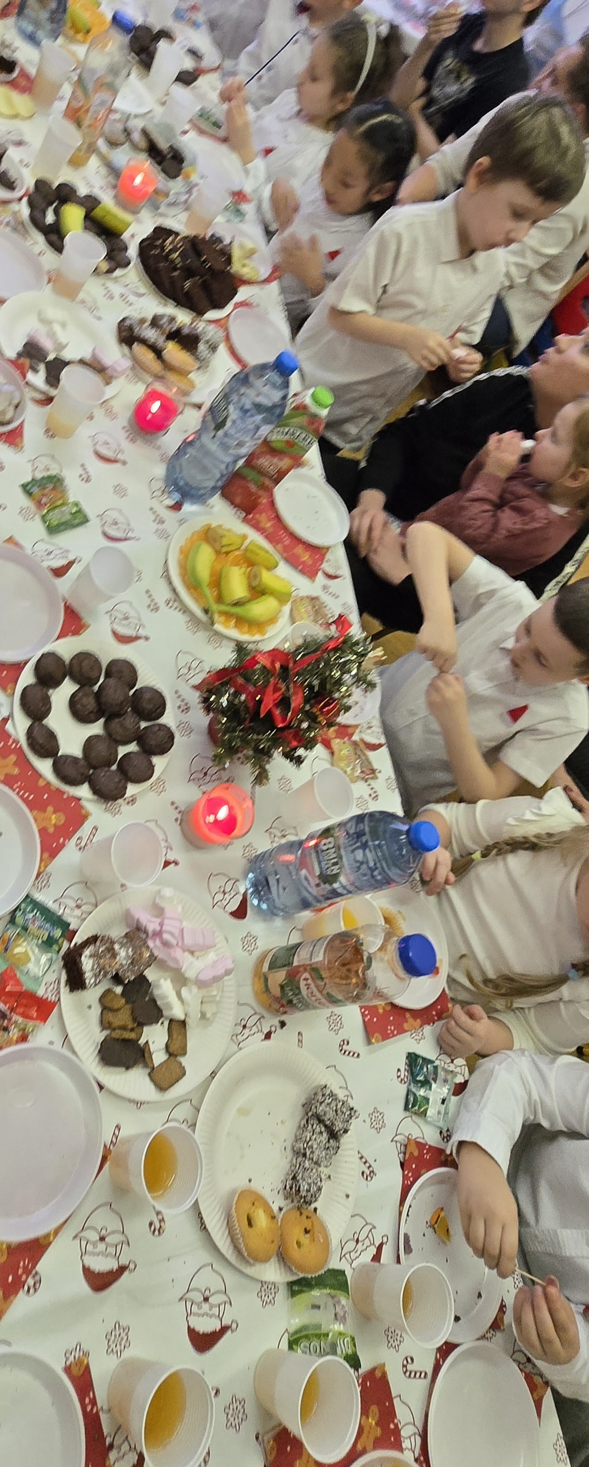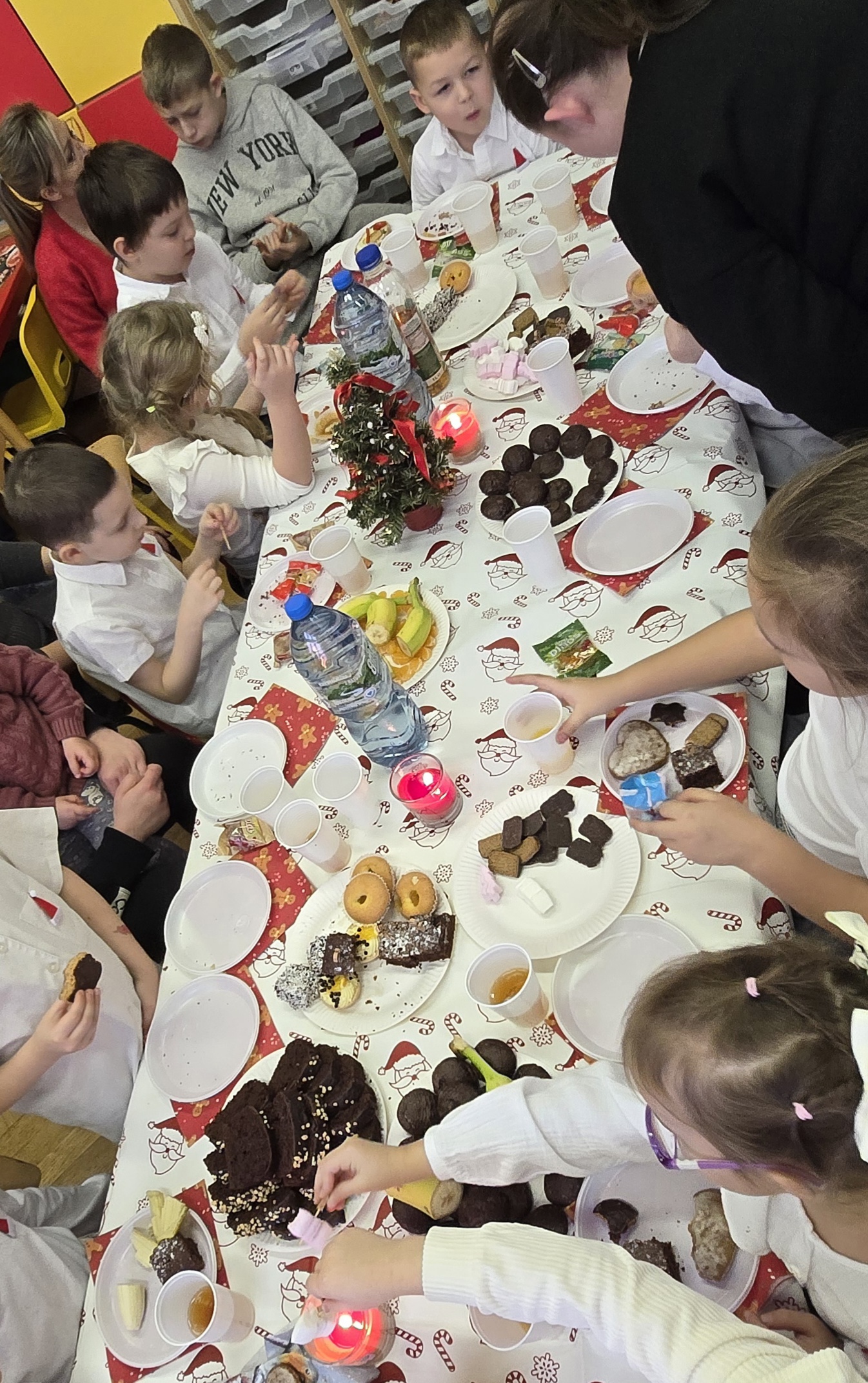 Zerówka przygotowała dla Rodziców występ, podczas którego śpiewały, grały na dzwonkach, tańczyły. Rodzice przygotowali pyszny i słodki poczęstunek, a dzieci wyczekiwały Mikołaja. Wspólny czas przed świętami był pełen uśmiechu i radości. Dzieci otrzymały prezenty od Mikołaja, a Rodzice od dzieci przygotowany przez nie stroik. Życzymy Wszyatkim WESOŁYCH ŚWIĄT BOŻEGO NARODZENIA.