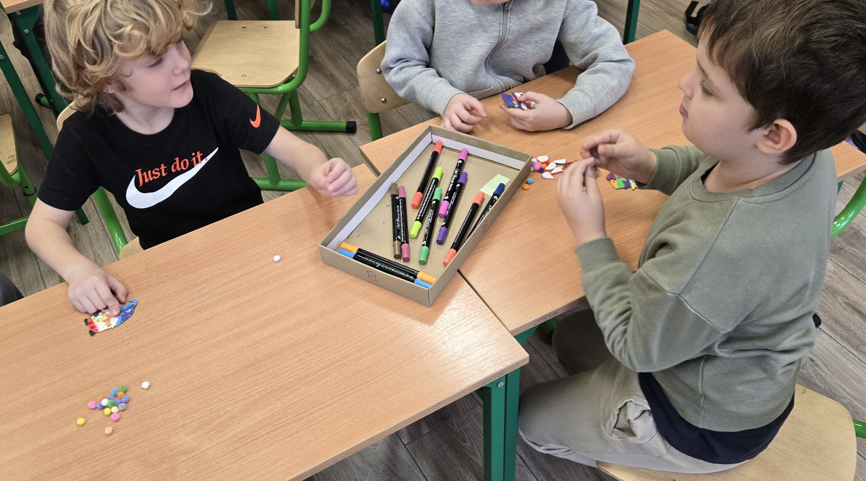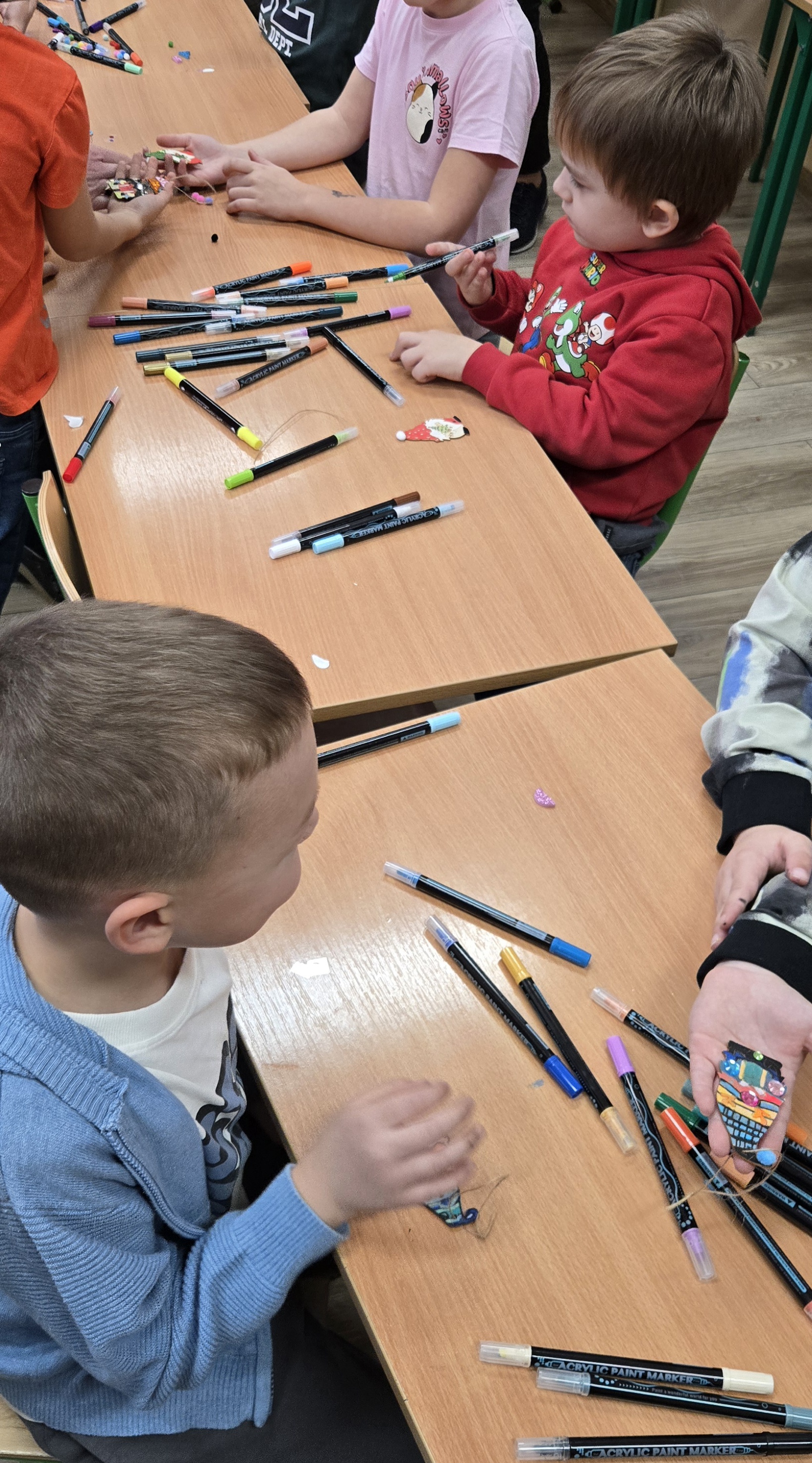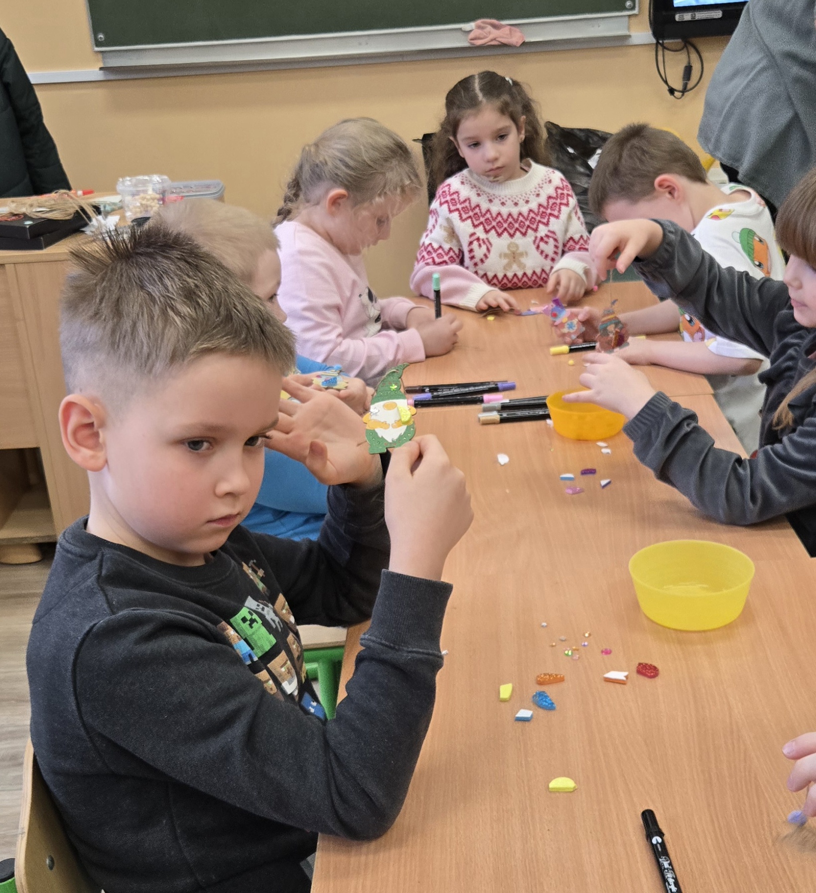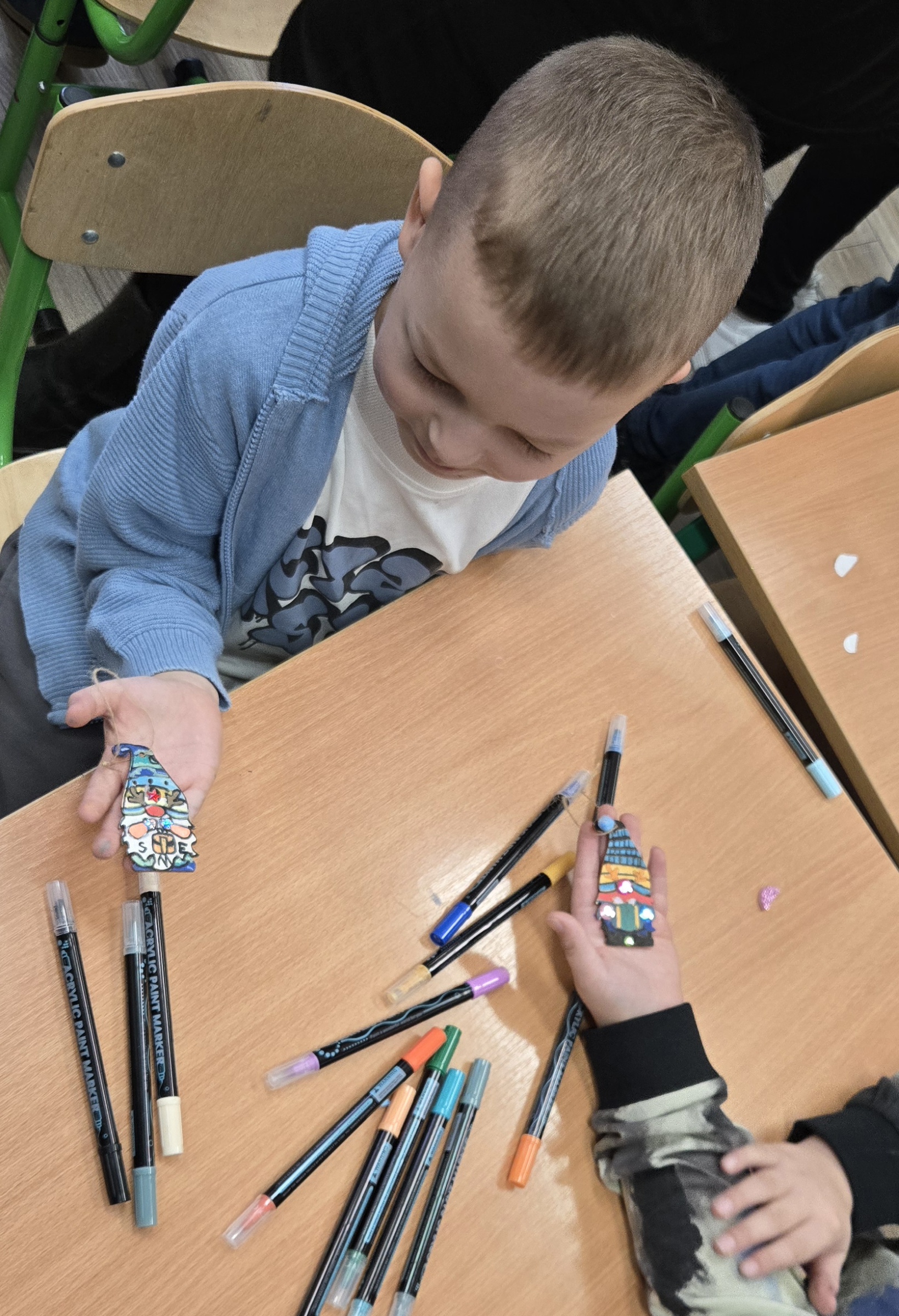 Wybraliśmy się do Szkoły Podstawowej nr 173 na warsztaty świąteczne organizowane przez klasę Ib. Dzieci oglądały szkołę, na przerwie rozmawiały z dziecmi z klas I, które ukończyły nasze przedszkole, a podczas warsztatów ozdabiały świątecznego skrzata przy piosenkach i kolędach. Wspólnie spędzony czas zaowocował nawiązaniem wspolpracy ze szkołą i zaproszeniem na wiosnę do nas.