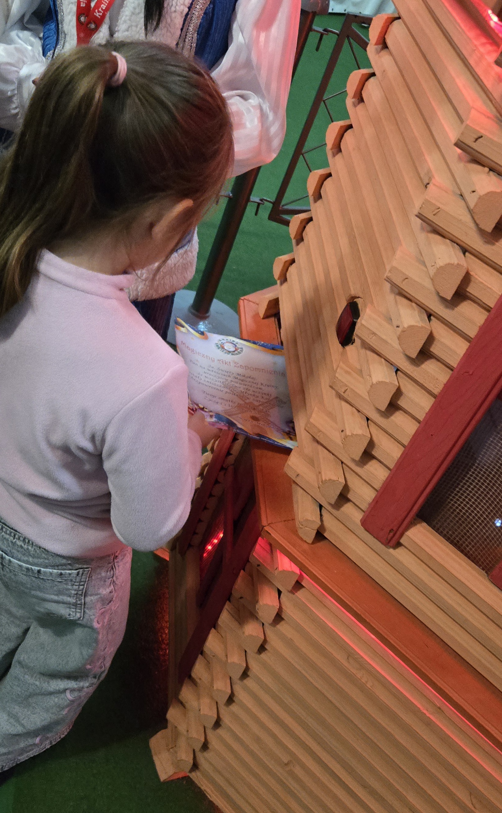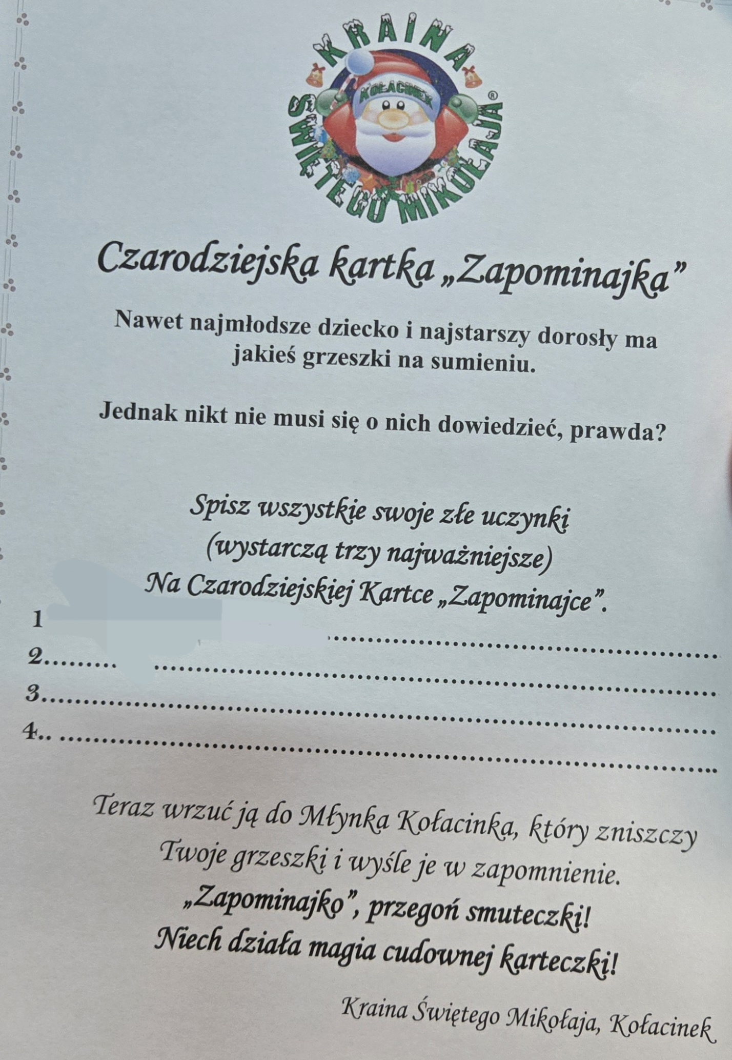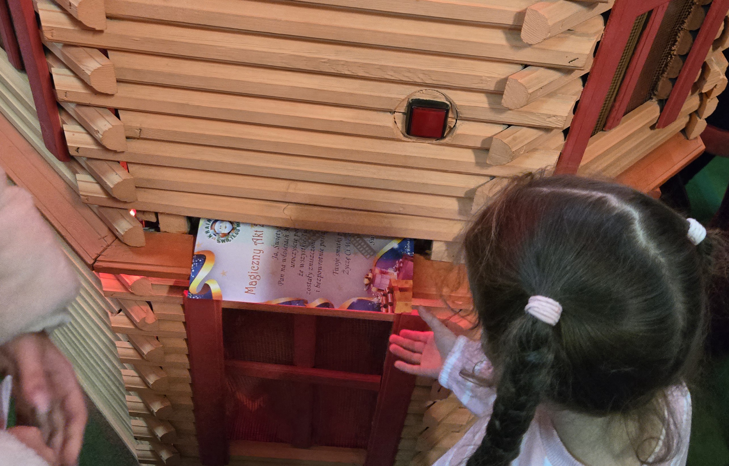 Na koniec wycieczki czekało na nas spotkanie ze św. Mikołajem. Ale zanim to nastąpiło musieliśmy przejść przez kołacinkowy młyn złych występków. Dzieci rysowały co zrobiły złego w ciągu roku, po to by zamazać i rzucić w niepamięć zle uczynki. Na koniec tego zadania młyn drukował dyplom anulowania złego zachowania.