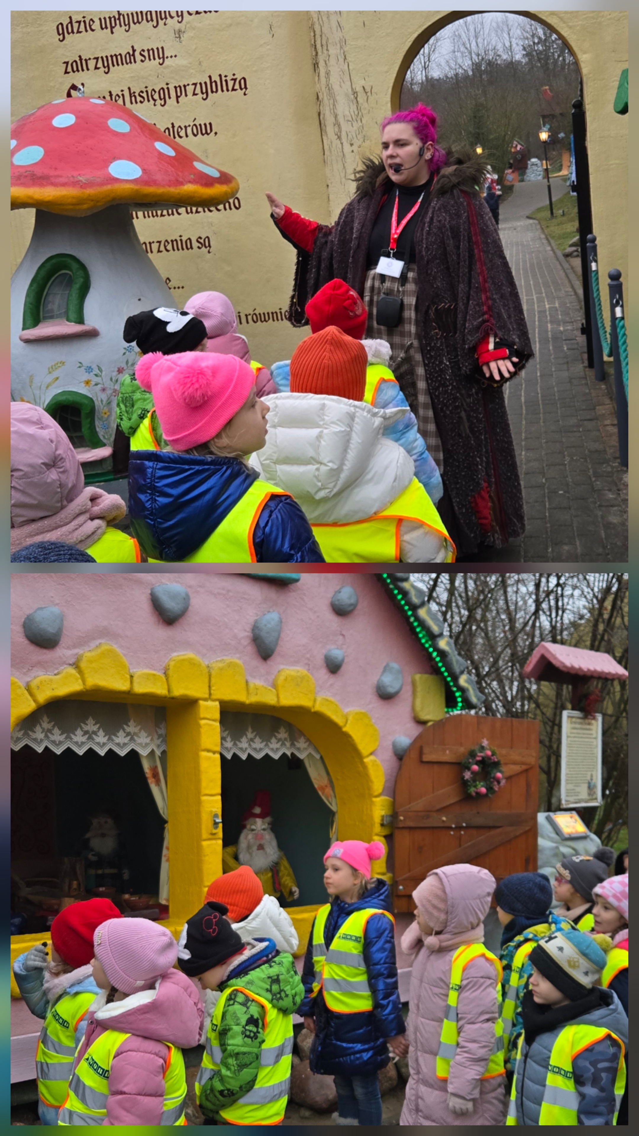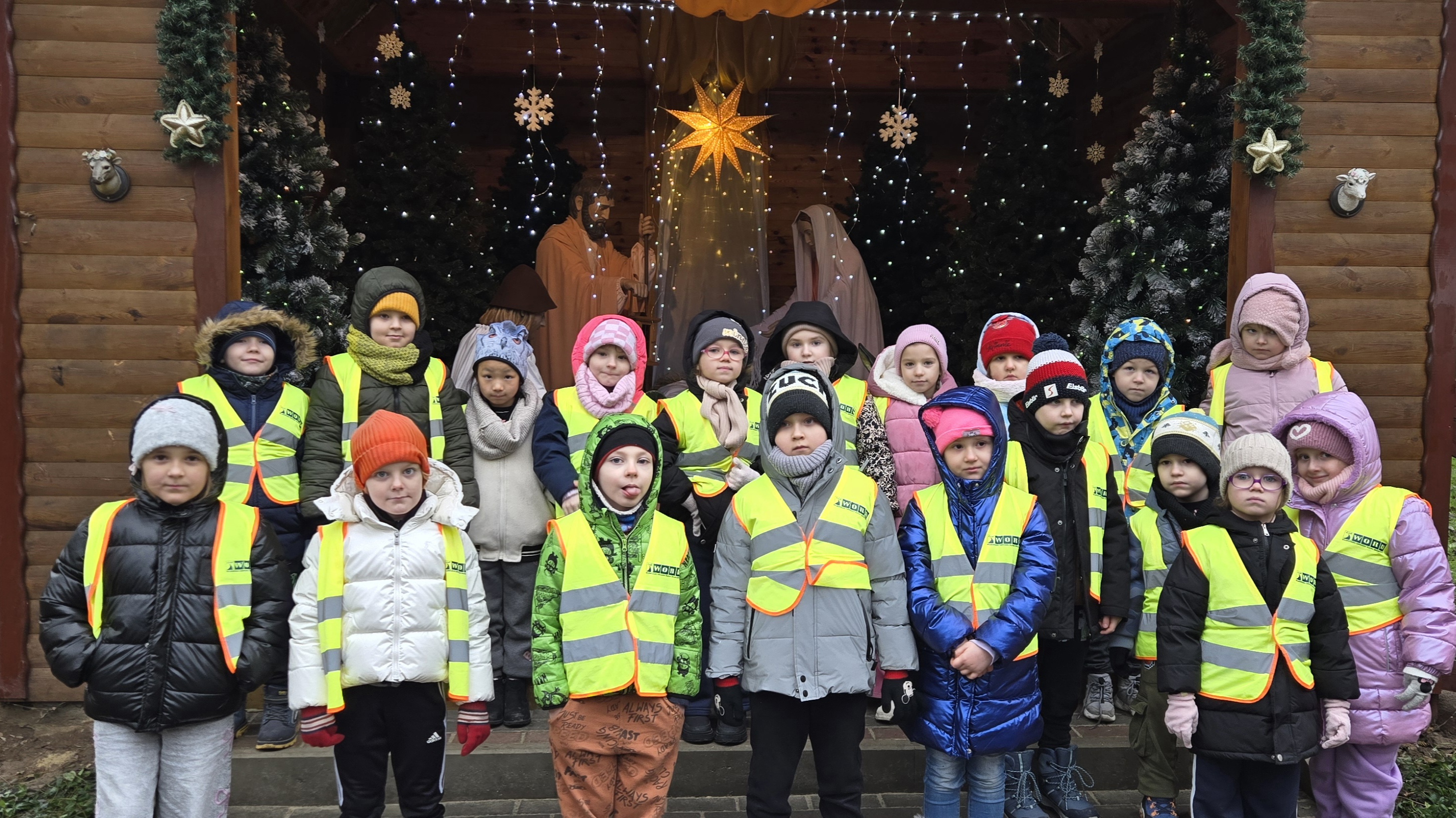 Zerówka wybrała się na wycieczkę do Kołacinka. Oglądaliśmy domki bajek oraz słuchaliśmy niesamowitych historii. Spacer bardzo się podobał. A ostatnim punktem wyprawy było zwiedzanie domku św. Mikołaja, choć samego gospodarza nie było w domu, to i tak na koniec wycieczki udało nam się z nim zobaczyć. Braliśmy udział w warsztatach, na których razem z elfem wykonywaliśmy bombkę na choinkę.